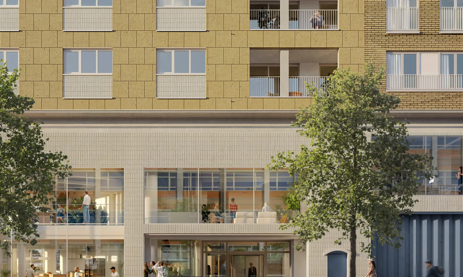 Naast de 179 nieuwbouwappartementen en bijna 2.000 vierkante meter aan groene buitenruimte, waaronder het nieuwe buurtplein ‘Hof Permeke’ werd op het gelijkvloers ruimte voorzien voor commerciële ruimtes, horecavoorzieningen en een dienstensector. Intussen werd bevestigd dat Aldi een supermarkt zal uitbaten, met een verkoopoppervlakte van ongeveer 1.200 vierkante meter. Van de 288 parkeerplaatsen in de ondergrondse garage zijn er 88 gereserveerd voor de supermarktklanten.
