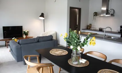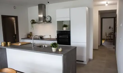 Het compromis werd ondertekend. Proficiat met je nieuwe woning! Je maakt kennis met je persoonlijke klantenbegeleider die je van A tot Z begeleidt bij de verschillende keuzes om van je woning een thuis te maken. De klantenbegeleider brengt je in contact met leveranciers voor de keuze van je vloerbekleding, keuken, badkamer en meer. Je volgt alles op de voet dankzij het persoonlijke overzicht in ons klantenportaal. Welkom in de buurt!
