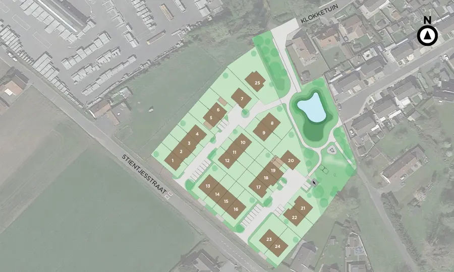 De groene woonbuurt bestaat uit kwaliteitsvolle nieuwbouwwoningen in landelijke stijl.